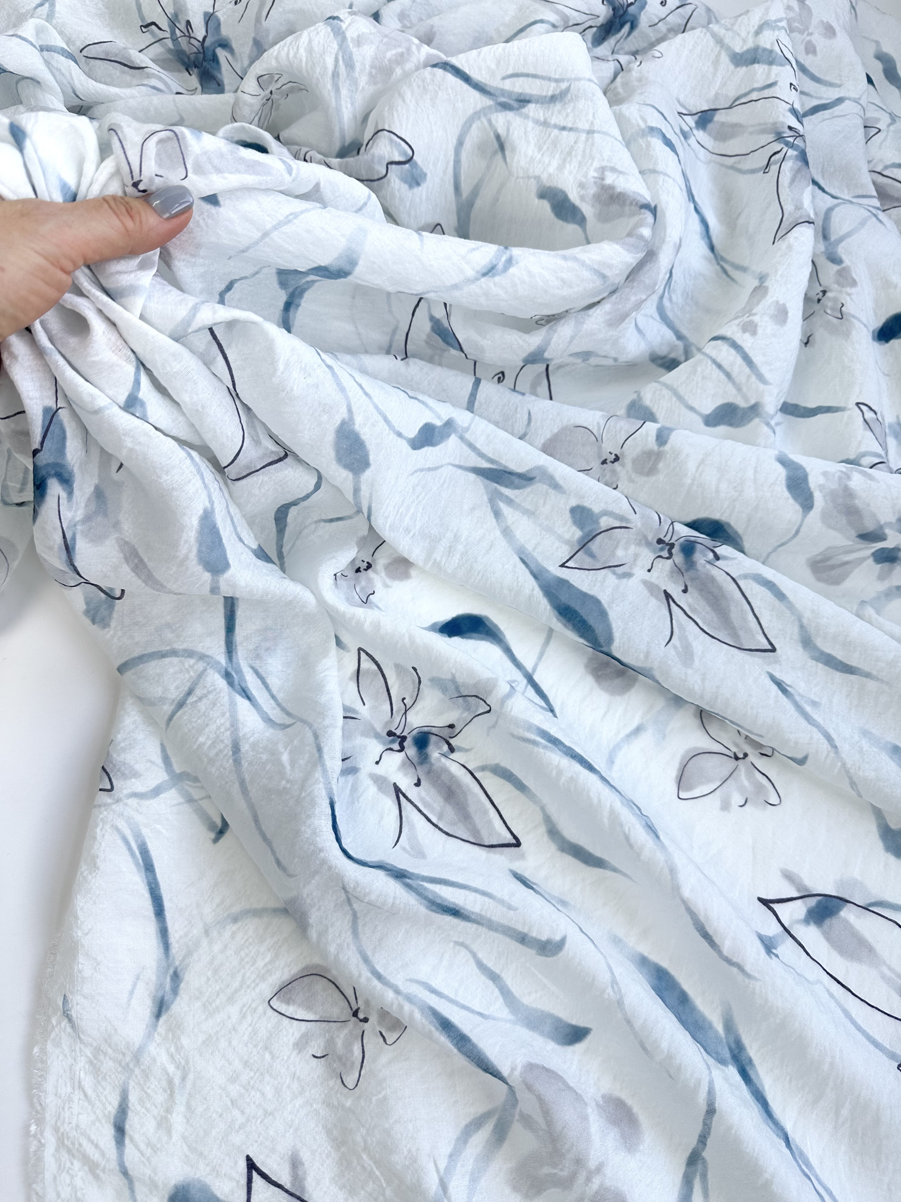 Вискоза с нейлоном, плательно-блузочная ткань, тонкая и легкая, слегка просвечивает. На юбки потребуется подкладка или подъюбник.